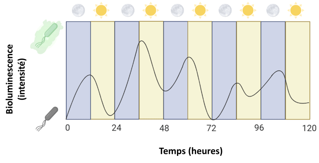 Les êtres humains, les animaux et les plantes ont ce qu’on appelle un rythme circadien, c’est une horloge interne qui suit un cycle de 24 heures. Parce que cette horloge se base principalement sur le cycle naturel jour/nuit, ce n’est pas une surprise que ce cycle se trouve aussi chez les bactéries photosynthétiques qui ont besoin de lumière pour se procurer de l’énergie.