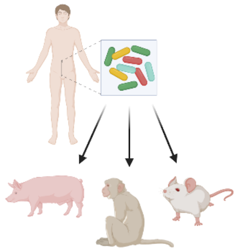 Deze HMA-modellen zijn veelal microbe-vrije muizen die opgegroeid zijn in een steriele omgeving. De knaagdieren krijgen ontlasting van gezonde vrijwilligers en/of patiënten die gediagnosticeerd zijn met een chronische ziekte. Als de ziekte verschijnt in de muis na deze zogenoemde ‘transplantatie’, dan is is er sprake van een oorzakelijk verband. Helaas is dat alles wat er over deze methode kan worden gezegd, want er is nog geen standaard methode ontwikkeld om experimenten uit te voeren die gebruik maken van dit dierlijk model.