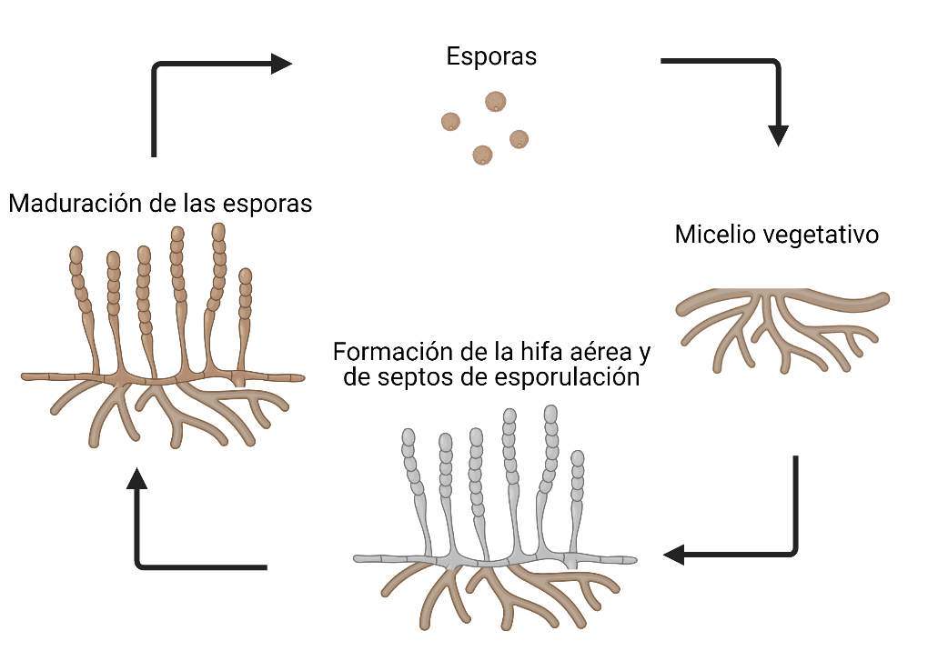 En el suelo, su hábitat natural, los estreptomicetos pueden ayudar a mejorar la salud de las plantas hospedadoras y su productividad, y proveer soluciones sustentables para los rendimientos los cultivos. Ellos crecen como hongos filamentosos, dado que producen hifas que forman una red micelial y esporas (lee mas acerca de el crecimiento de hifas de hongos aquí). Los estreptomicetos no son móviles y pueden distribuir sus esporas a lo largo de largas distancias a través del viento o adheridas a insectos y nemátodos. De todas formas, hasta ahora aún no estaba claro como se relocalizaban a si mismos a través de distancias cortas (unos pocos centímetros) para llegar a su microambiente favorito, como son los sistemas de raíces de plantas.