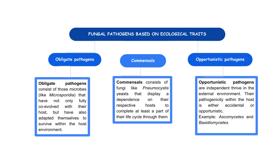Les caractéristiques écologiques qui favorisent la pathogénèse fongique chez l’homme comprennent la répartition biogéographique, la thermotolérance à la température corporelle normale, l’adaptabilité à des niveaux d’oxygène variables, l’accouplement par rapport à la reproduction asexuée, l’évasion de la prédation, etc. Ces facteurs nous permettent de différencier les agents pathogènes de leurs homologues non virulents et nous aident à comprendre le moteur de l’évolution de la pathogénicité.