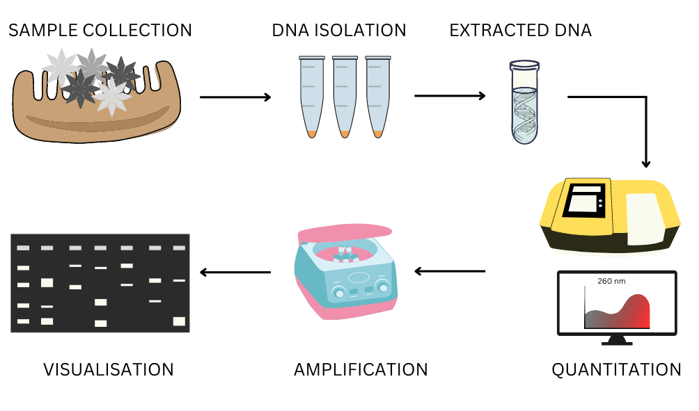 Recently, Pawan Mandal and Isha Rajput provided a simple and cost-effective method that can be used in forensic investigations for the isolation of high-quality DNA from samples of dandruff. For this study, dandruff samples were collected from 50 individuals using sterile combs. A 10% bleach solution was used to remove any contaminants from the samples. The air-dried samples were then used to extract DNA using a commercial kit for DNA extraction. The DNA was further analyzed for quantity and quality and amplified by polymerase chain reaction to generate enough copies for further examination. The amplified DNA was visualised using gel electrophoresis. The DNA extracted using this method was high in concentration and purity making it suitable for downstream processes, such as sequencing and genotyping. Furthermore, this method generated strong and reproducible profiles for all the dandruff samples tested.
