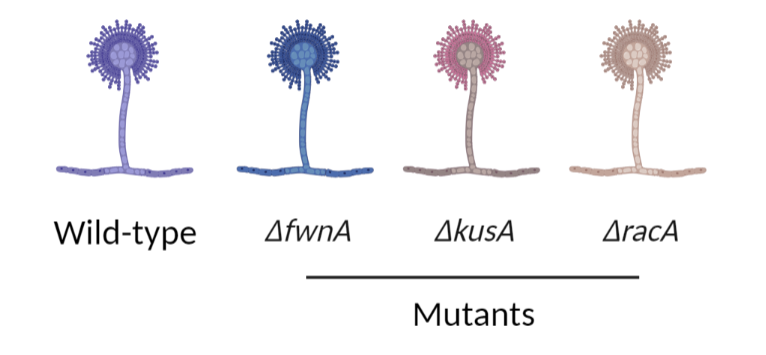 Múltiples factores contribuyen a la tolerancia a la radiación en cualquier organismo específico. Los científicos crearon mutantes de A. niger para comprender las funciones de tres factores: pigmentación, reparación del ADN y crecimiento polar (control del tamaño de la colonia de hongos). Para cada mutante, eliminaron un solo gen responsable de conferir cada factor. Los mutantes se denominaron ∆fwnA (pigmentación), ∆kusA (reparación del ADN) y ∆racA (crecimiento polar).