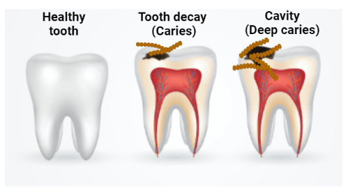Pour développer une carie dentaire, la bactérie S. mutans doit d’abord adhérer à la surface d’une dent et former un biofilm appelé plaque dentaire (Figure 2). Si une plaque est maintenue en permanence à un pH inférieur à 5,4 (ce qui est acide), elle favorise la déminéralisation de l’émail de la dent.