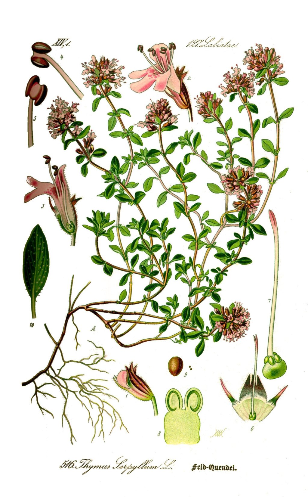 Featured image: Thymus serpyllum illustration featured in Flora von Deutschland, Österreich und der Schweiz, published 1885. Image source: Public Domain, via Wikimedia Commons.
