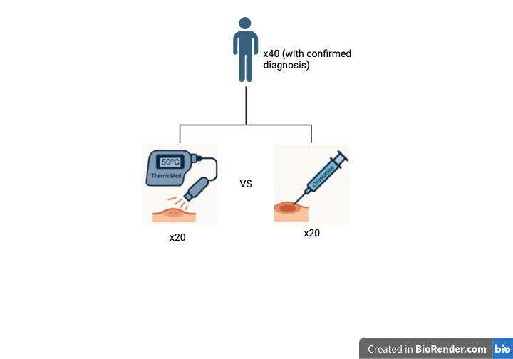 To compare the therapeutic efficacy of thermotherapy vs Glicantime®, researchers performed a pilot study.In this study, 40 participants were enrolled, with 20 in the Glucantime® group and 20 in the thermotherapy group. There were no statistical differences in baseline characteristics including age, sex distribution and lesion number and size.