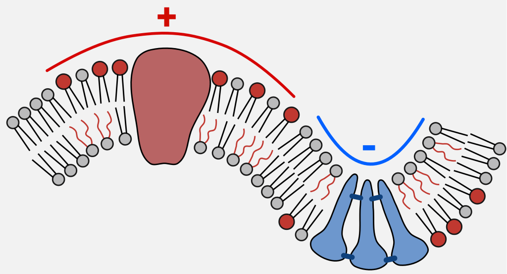 La capillarité, c’est par exemple l’eau qui est « aspirée » dans une éponge sans l’aide de la gravité. Ici, on parle plutôt de mouillage qui décrit la capacité d’un liquide à s’étaler sur une surface à laquelle il colle, mais les deux phénomènes sont liés. Etonnamment, la membrane cellulaire est comparable à un liquide grâce à sa composition lipidique et sa malléabilité. Sa composition se modifie localement lorsqu’elle se déforme, en éloignant ou accumulant certaines molécules en fonction de leur forme.