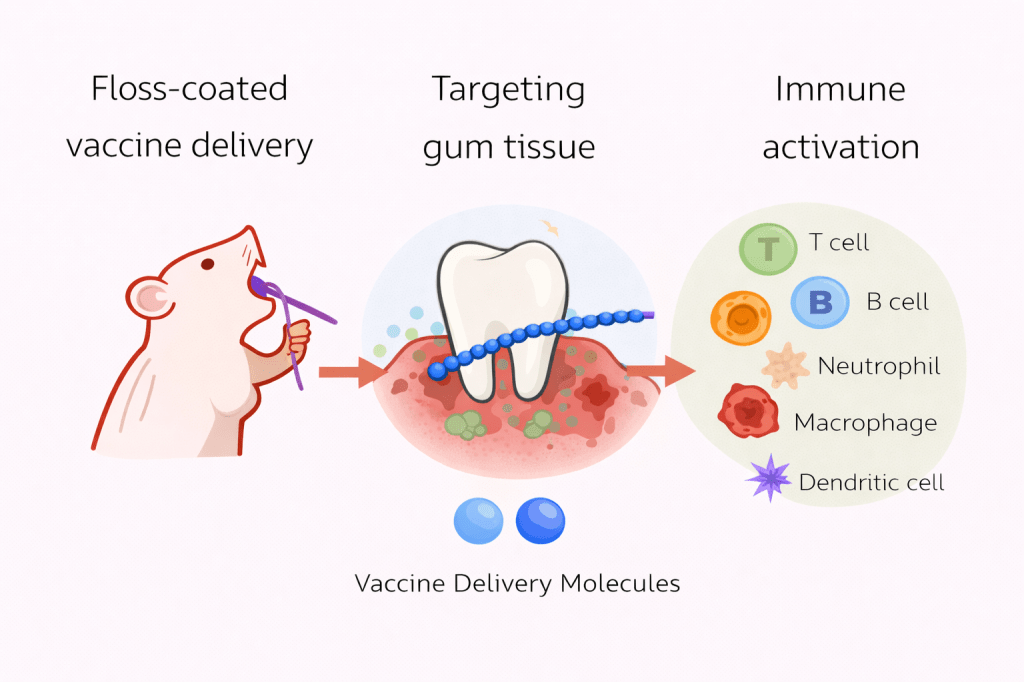 A recent study in Nature Biomedical Engineering reported an unconventional strategy using dental floss to deliver vaccines directly to the gums.