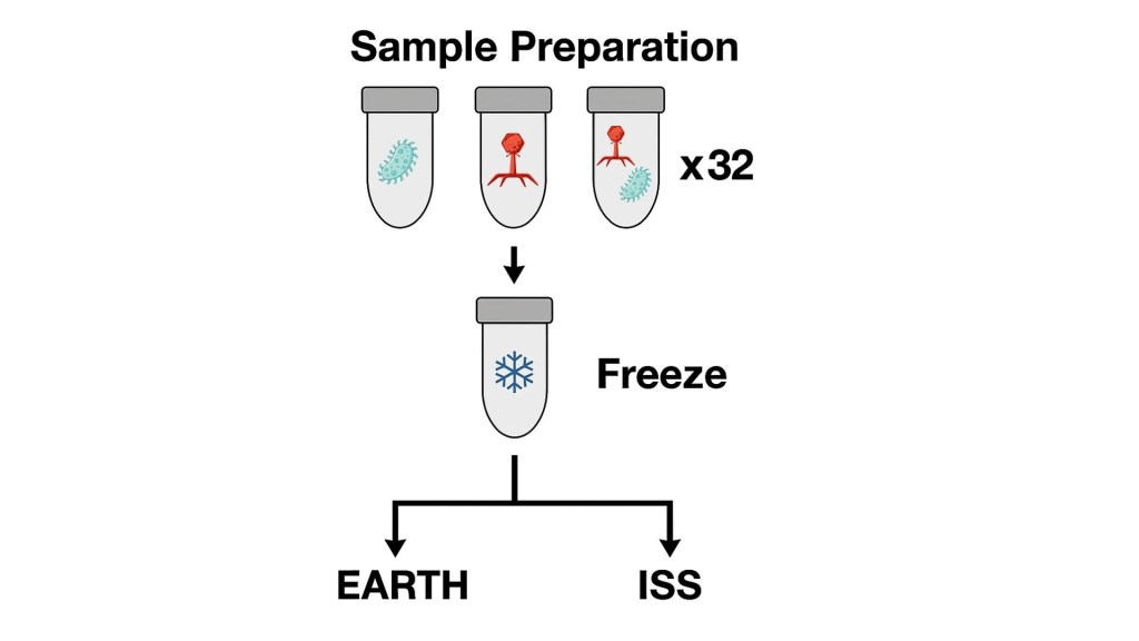The researchers chose a well‑studied microbial duo: Phage T7 and Escherichia coli BL21, a harmless laboratory strain. They prepared 32 tiny cryovials containing either phages, bacteria, or mixtures of both, then froze them solid. Half of these vials were launched to the ISS; the other half stayed on Earth as controls. All samples followed the same sequence: freeze → thaw → incubate at 37°C → refreeze. After their orbital adventure, the vials were returned to Earth, thawed one final time, and analyzed to see how the microorganisms within had fared.