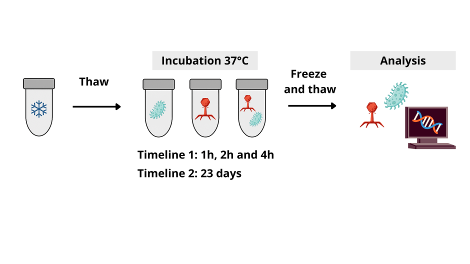 There were two main experimental timelines. The first timeline included short-term incubations of 1, 2 or 4 hours to test how quickly phage infection begins in microgravity. The second timeline existed out of a long-term 23-day incubation which allowed for many rounds of replication, and therefore evolution, to occur. After recovery, the team measured bacterial and phage abundance, sequenced their genomes to detect new mutations, and analyzed mutational variants to see how microgravity shaped phage evolution.